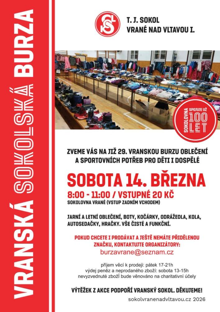 DVACÁTÁDEVÁTÁ VRANSKÁ BURZA - sobota 14. 3. 2026 od 8:00 do 11:00 hodin v sokolovně