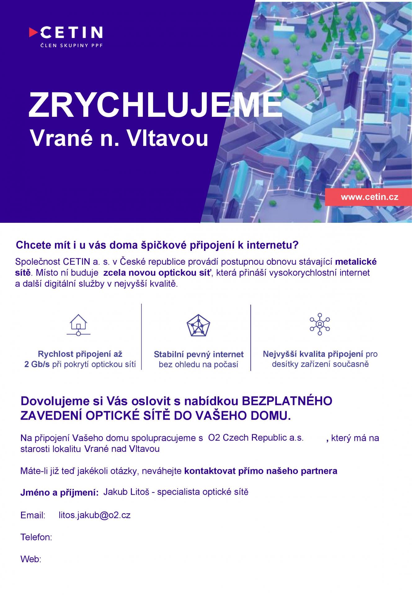 vedení obce schválilo projekt modernizace metalické sítě na optickou síť, který je investicí společnosti Cetin v naší obci. V souvislosti s projektem najdete ve svých schránkách dopis s detailními informacemi. V následujících dnech budete kontaktováni pracovníky partnera Cetinu, ze společnosti O2, kteří budou zpracovávat Vaše souhlasy s přípojkami a budou Vás informovat o možnostech připojení Vaší nemovitosti.“