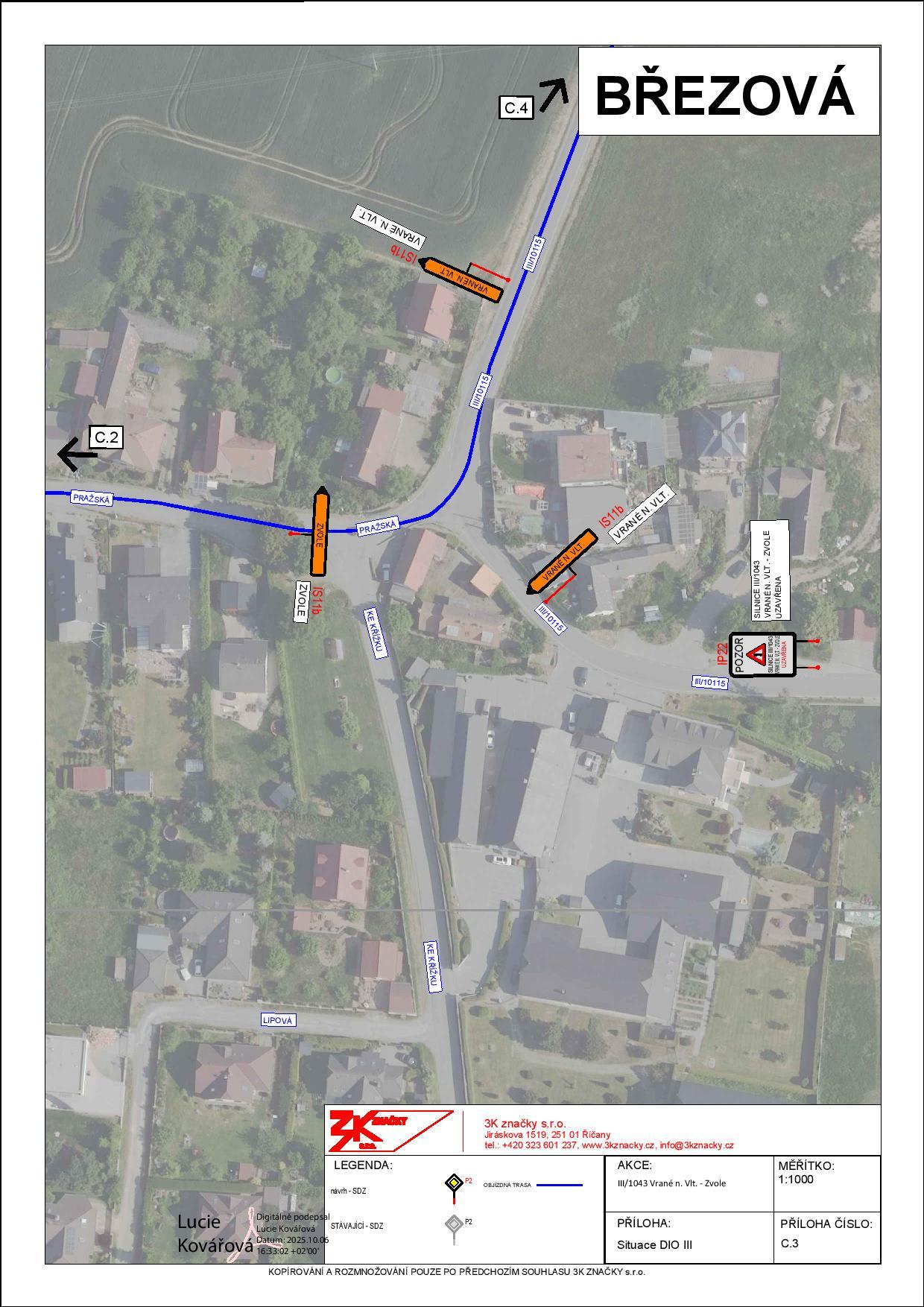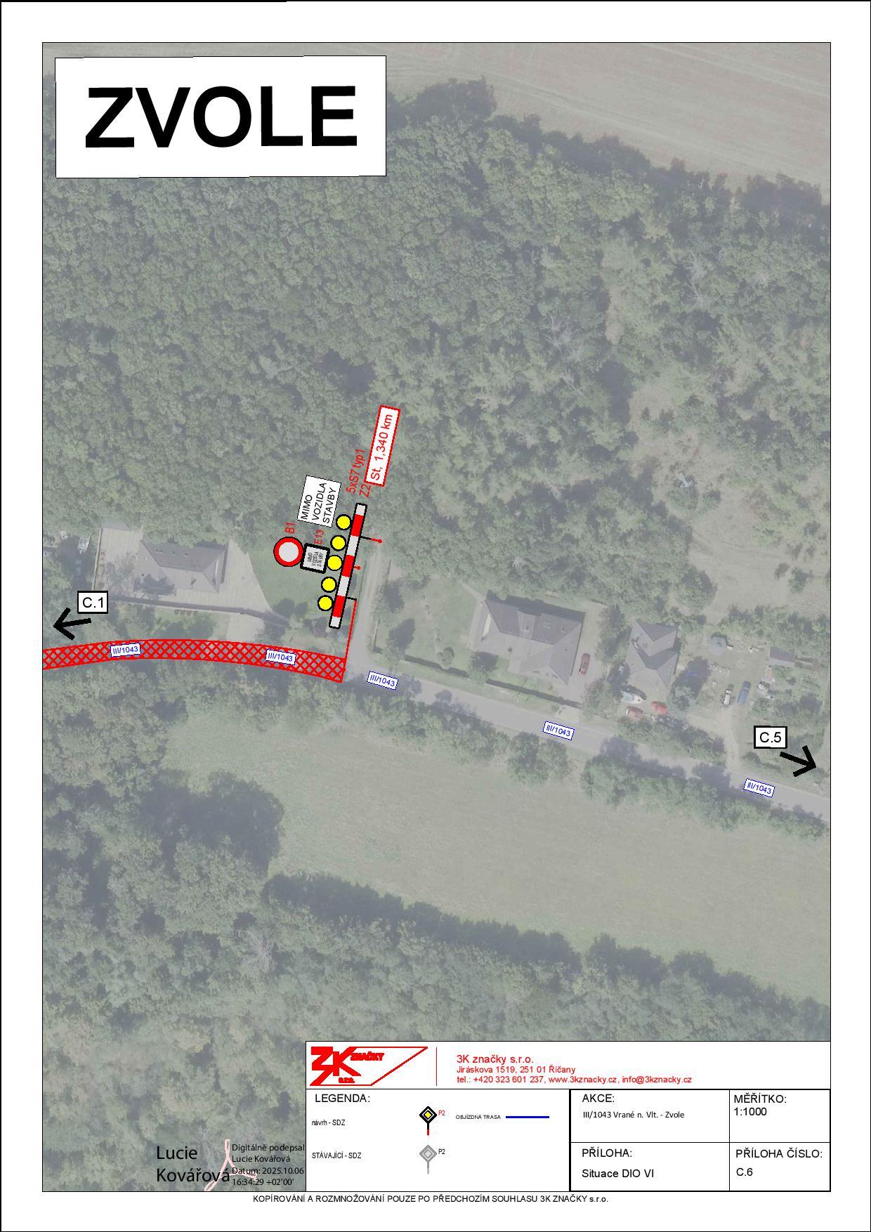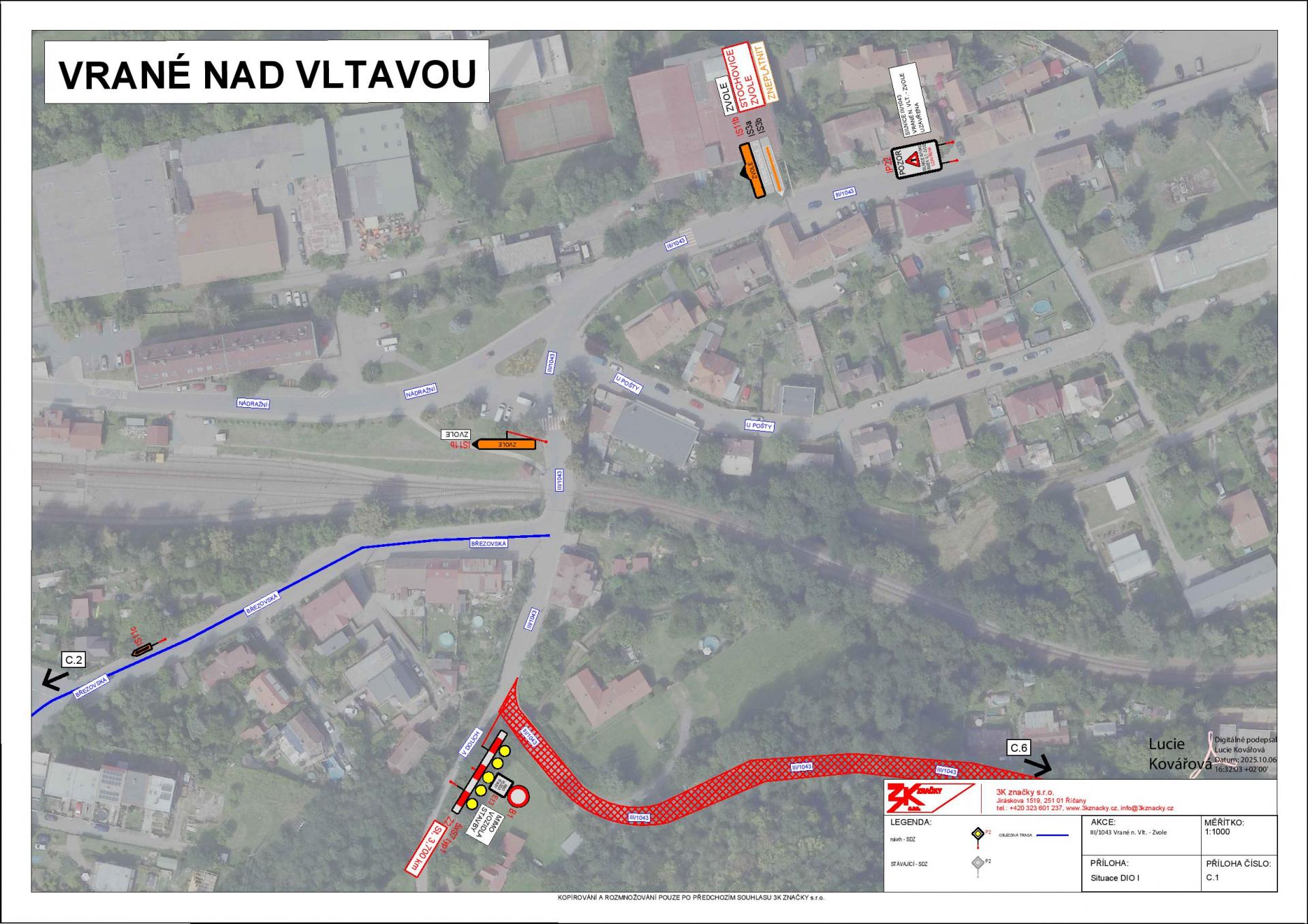 Plánovaná uzavírka silnice č.III/1043 v úseku Vrané nad Vltavou - Zvole v termínu od 28.10. do 29.10.2025