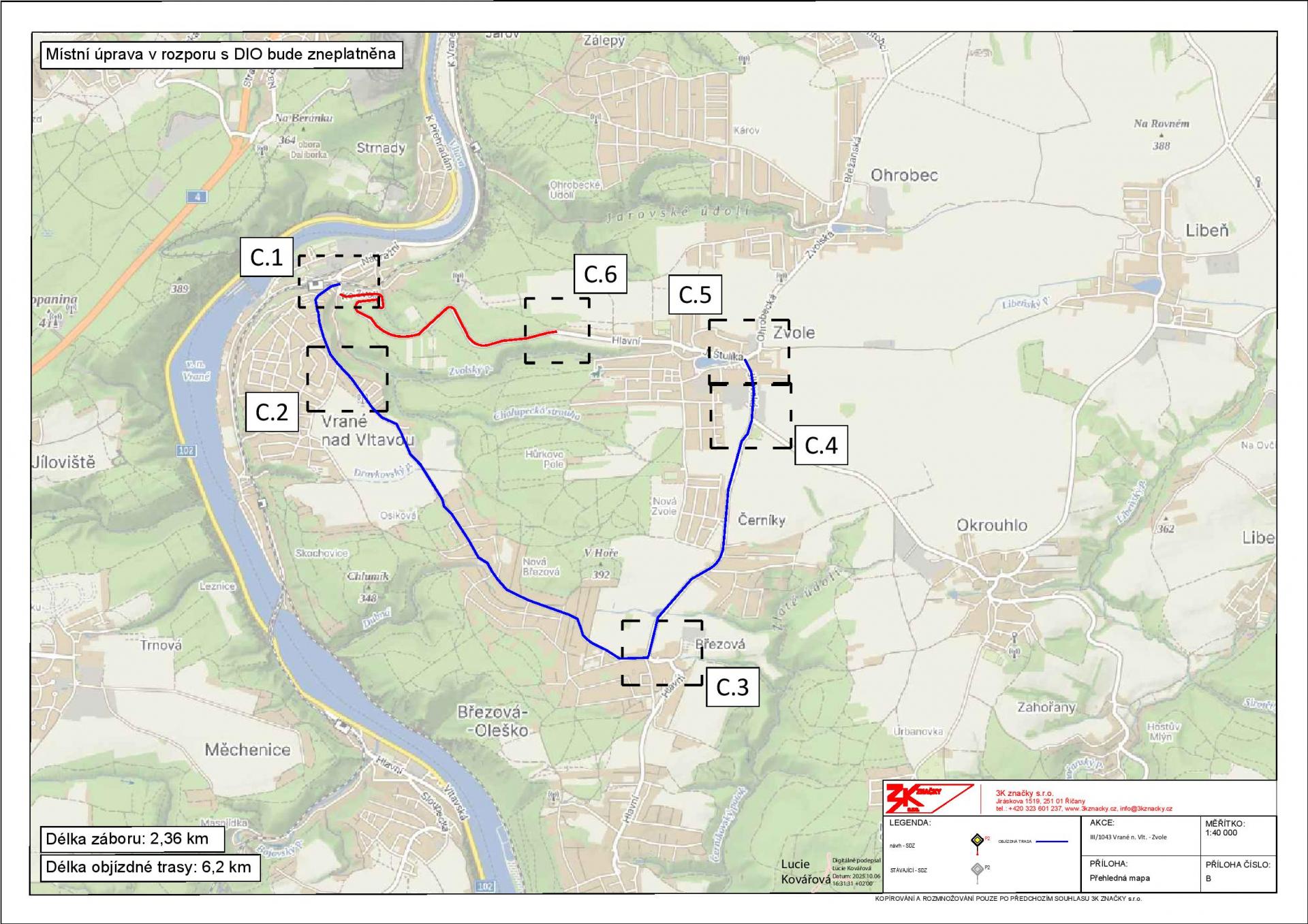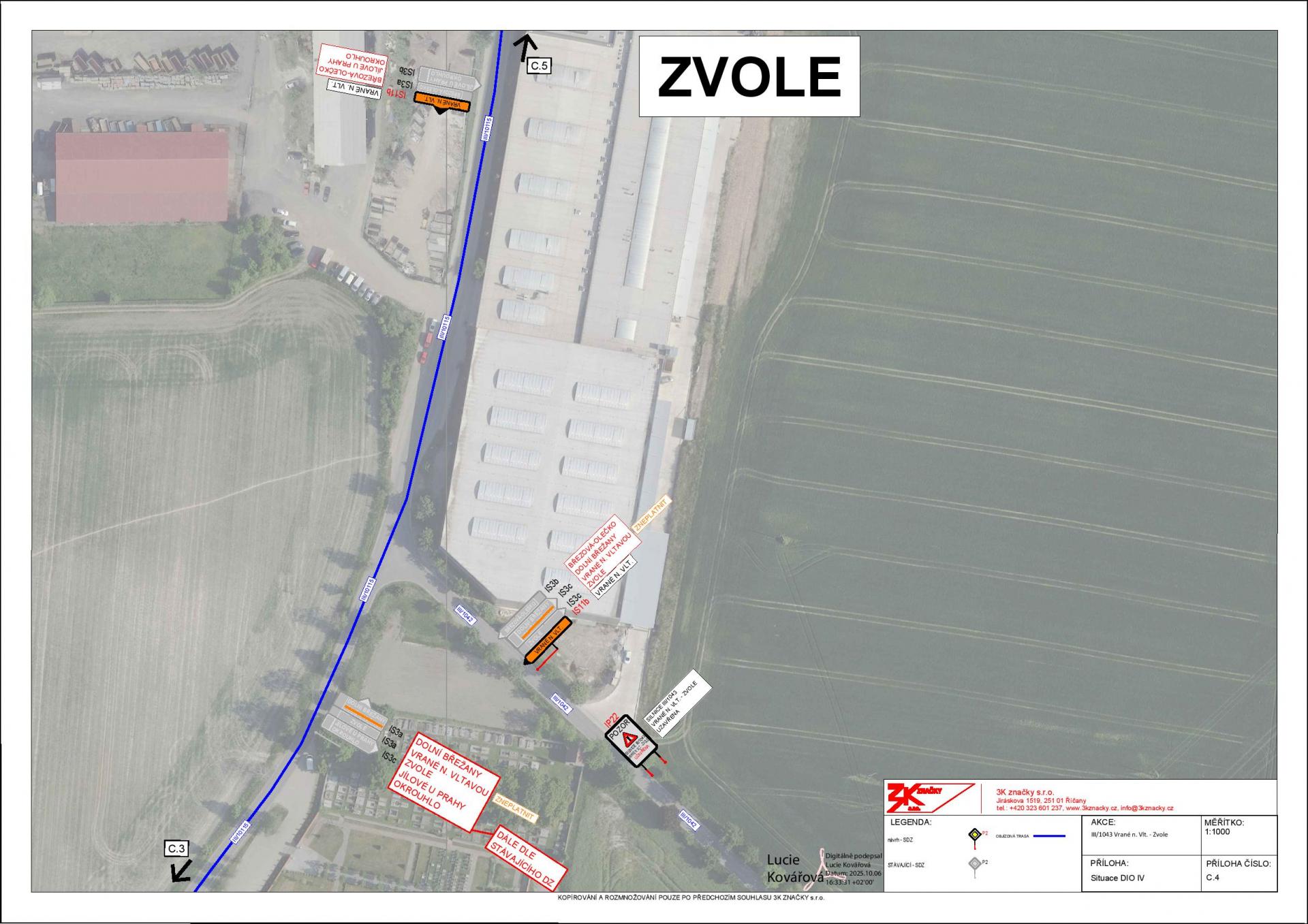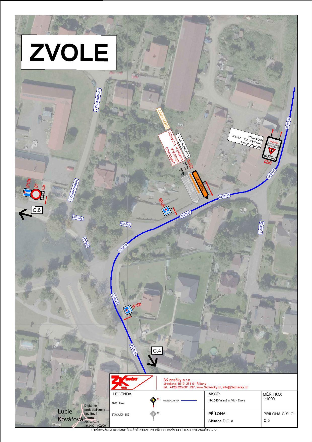 Plánovaná uzavírka silnice č.III/1043 v úseku Vrané nad Vltavou - Zvole v termínu od 28.10. do 29.10.2025