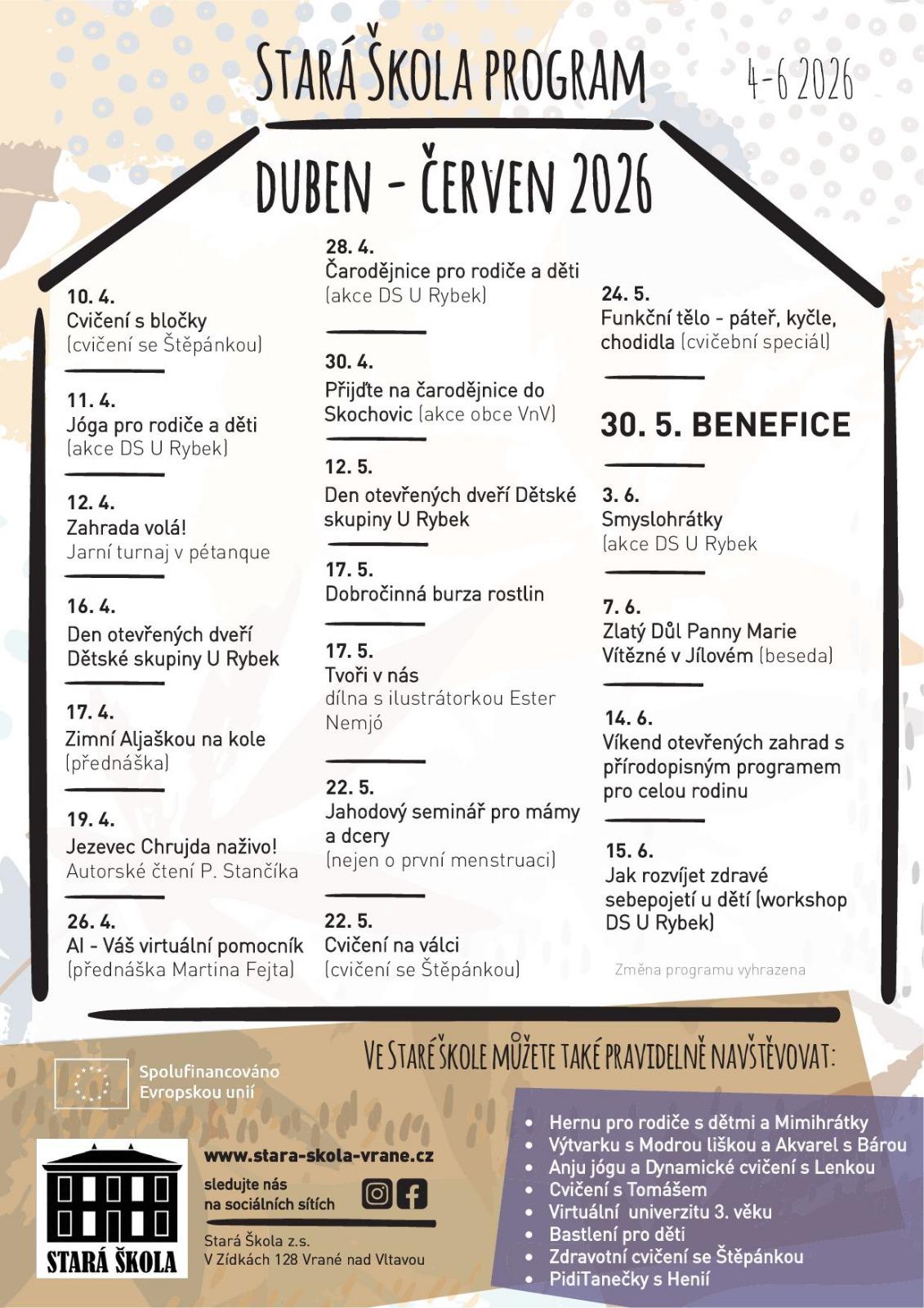 Program akcí ve Staré škole v období 4 - 6/2026