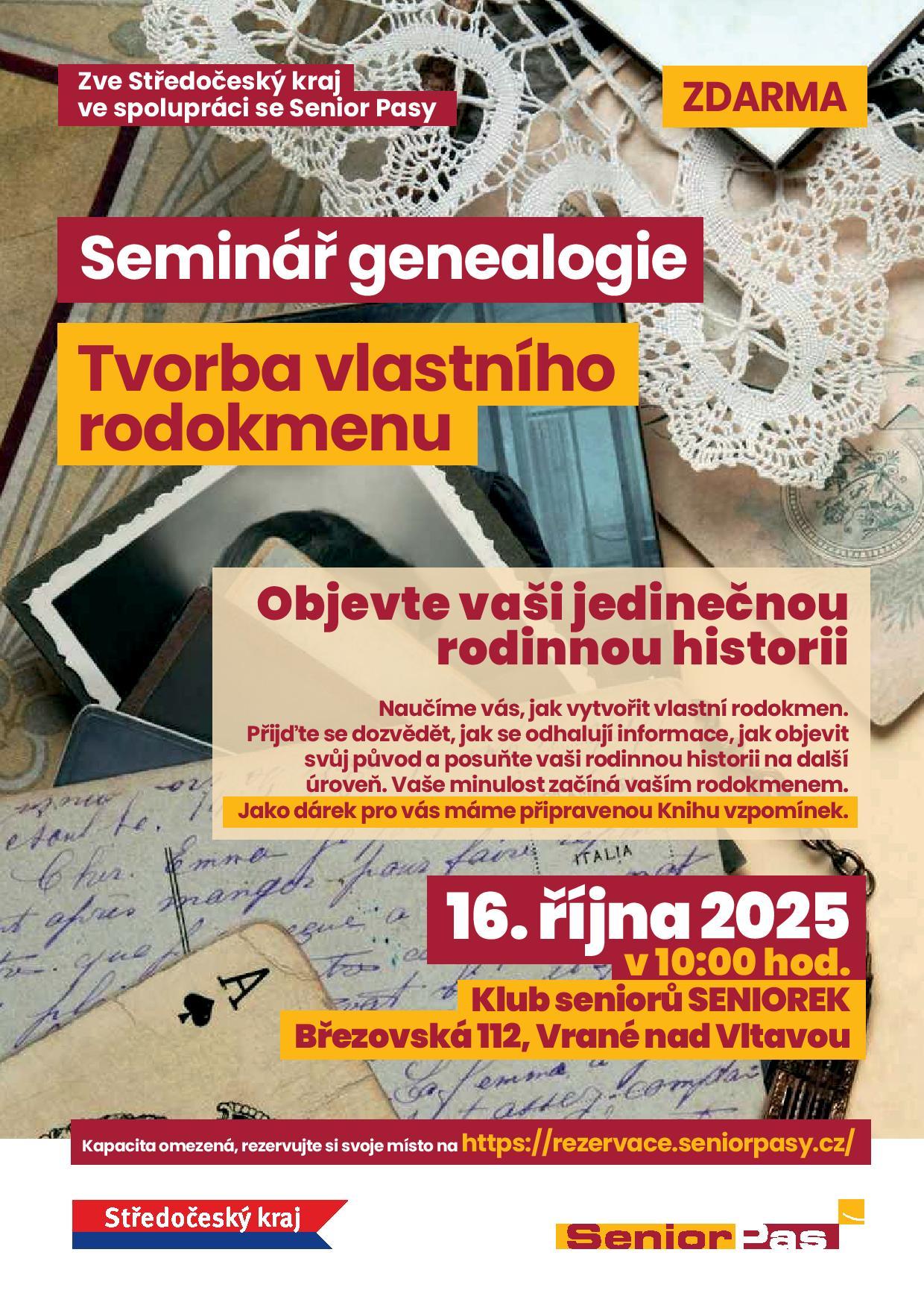 Seniorek Vás zve na seminář genealogie - 16.10.2025 od 10 hodin