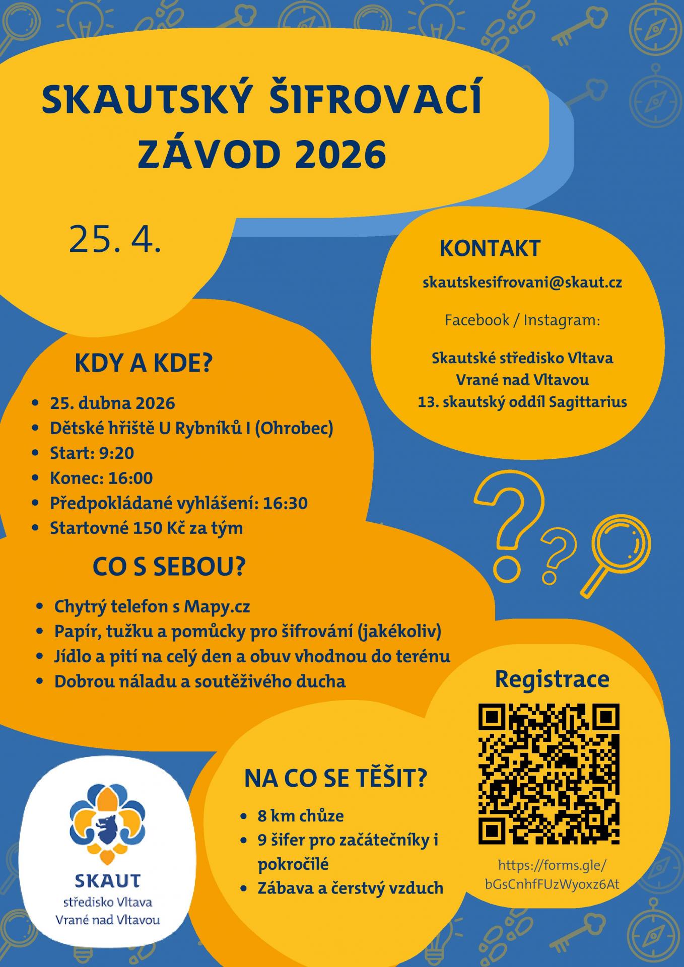 Skautské středisko Vltava Vrané nad Vltavou Vás zve na Skautský šifrovací závod - sobota 25. 4. 2026