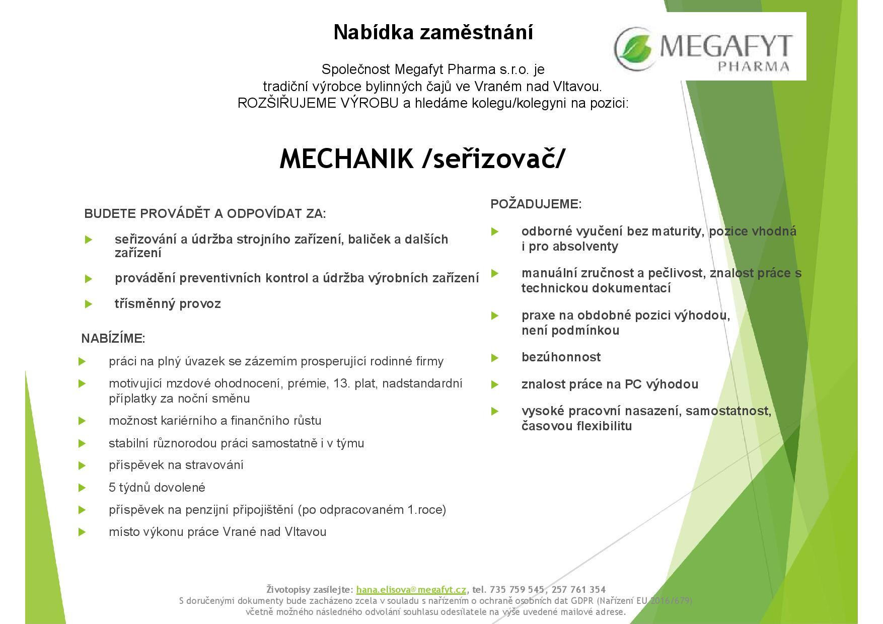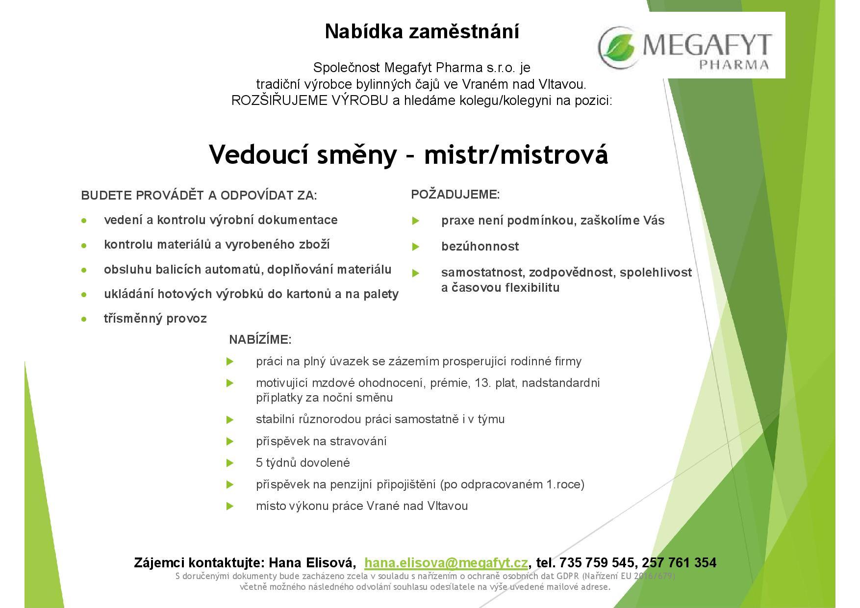 Společnost Megafyt Pharma s.r.o., lokální výrobce bylinných čajů, rozšiřuje výrobu a hledá zaměstnance na uvedené pozice