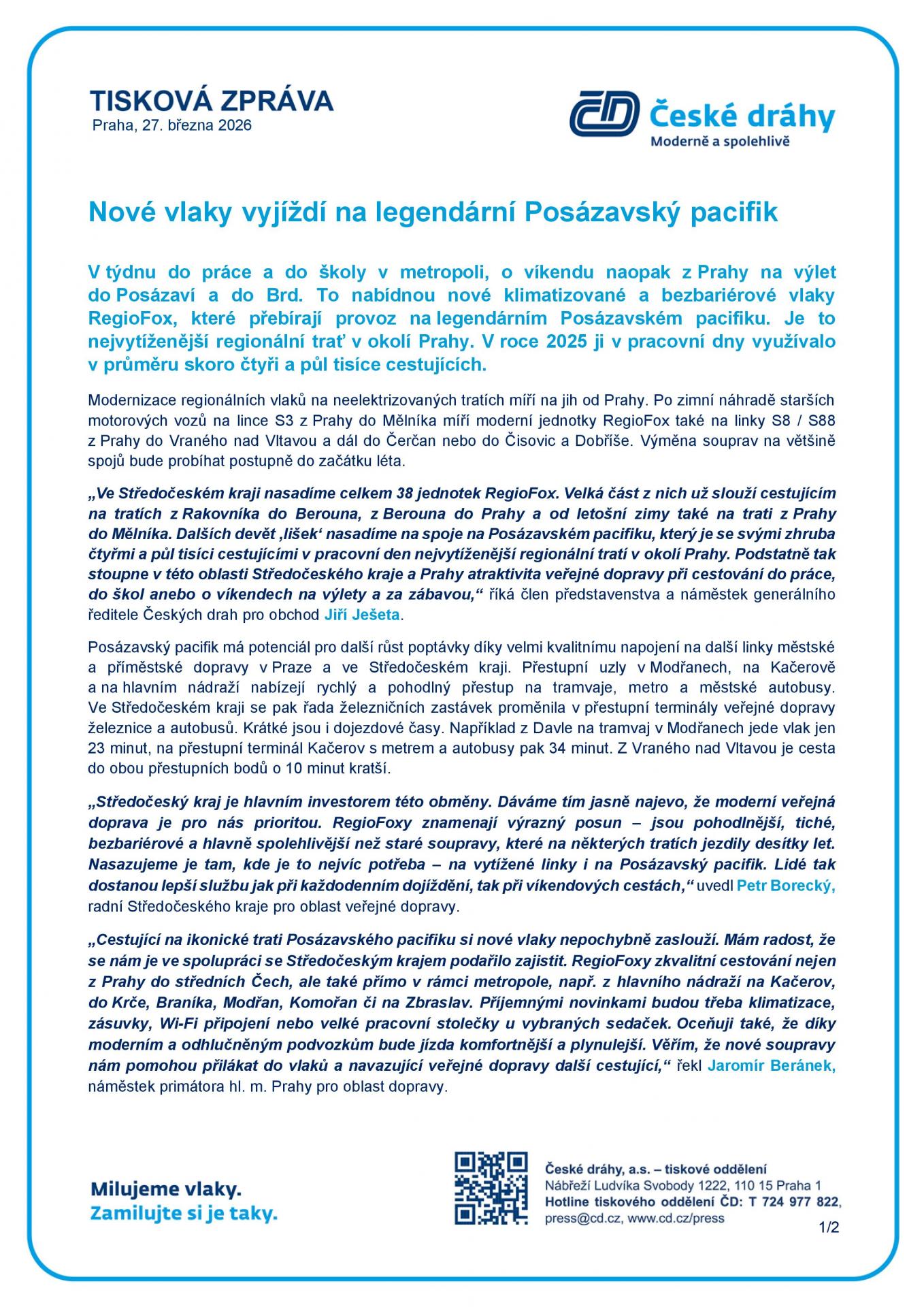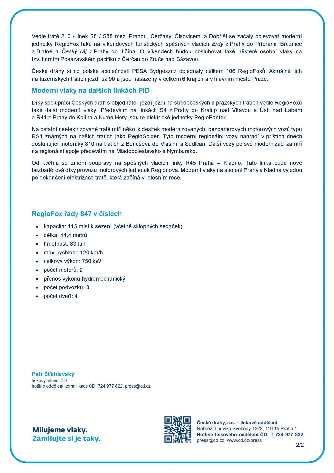 Nové vlaky vyjíždí na legendární Posázavský pacifik - TISKOVÁ ZPRÁVA