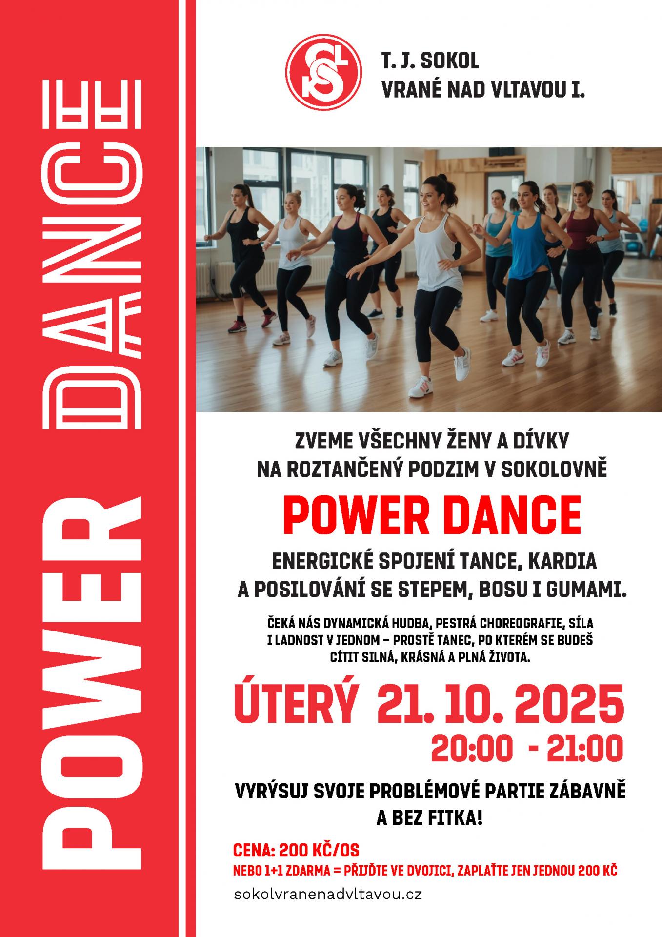 TJ Sokol Vrané nad Vltavou I. Vás zve na Power dance - v úterý 21.10.2025 v čase od 20:00 - 21:00 hodin