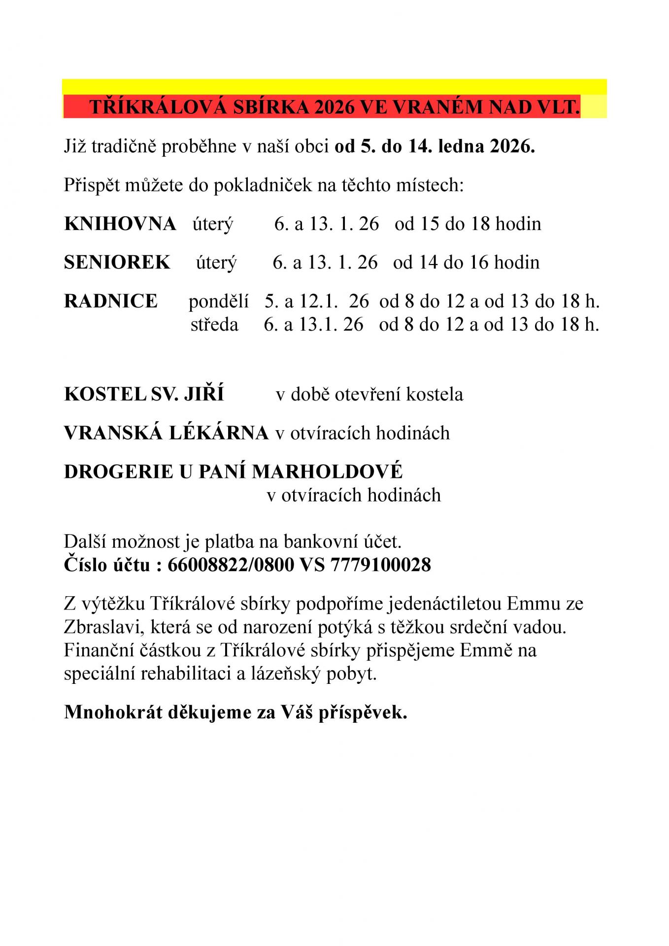 TŘÍKRÁLOVÁ SBÍRKA 2026