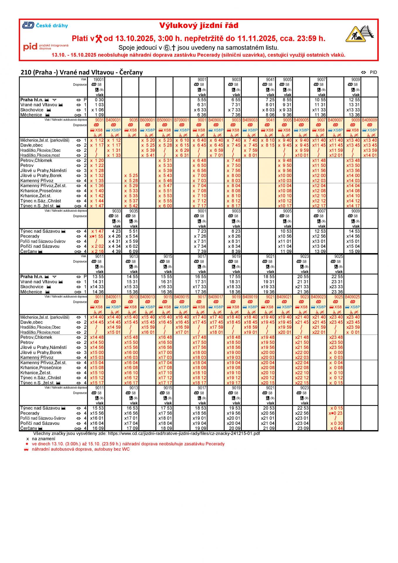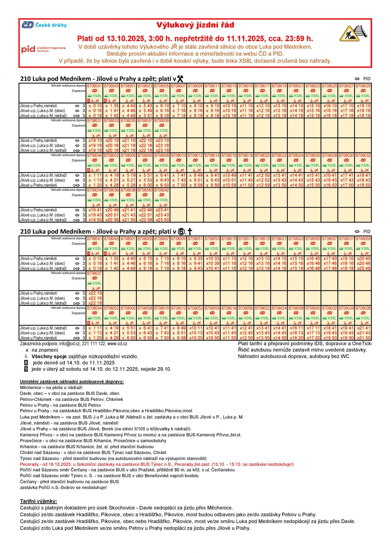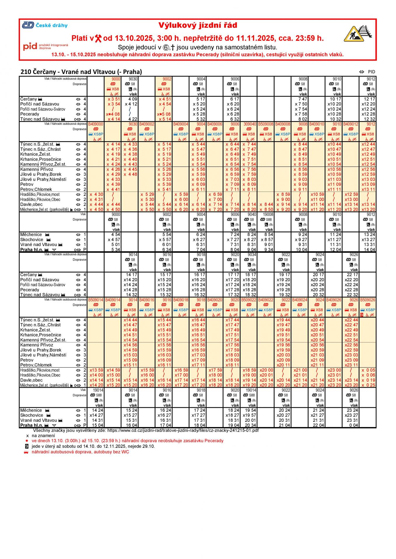 Výluka na železniční trati č. 210 od 13.10. do 11.11.2025
